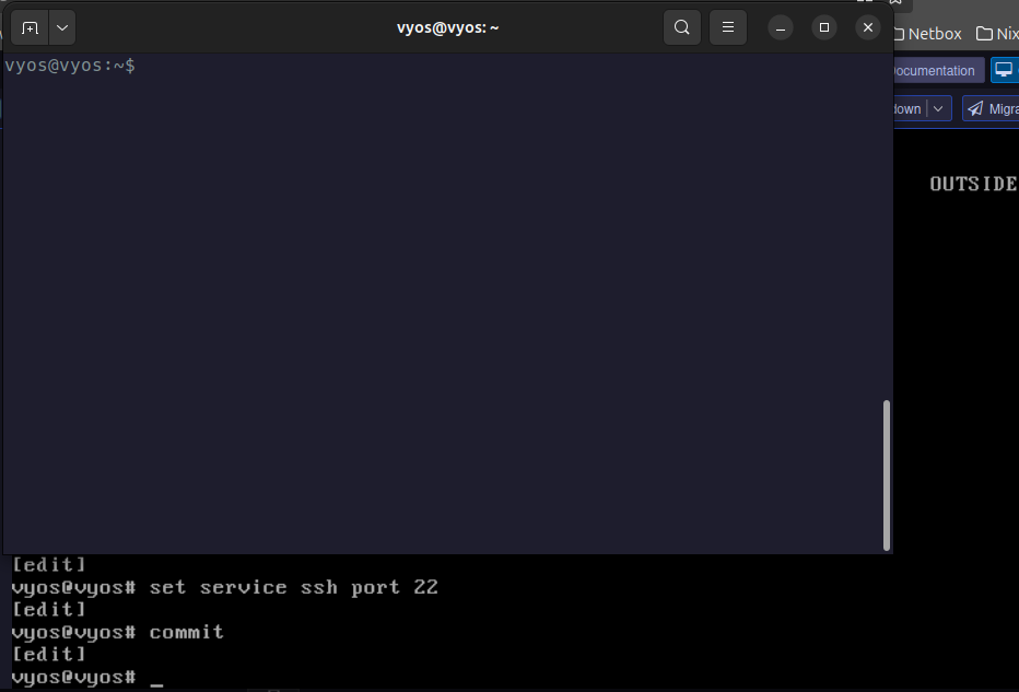 First we need to set up the ssh service in VyOS, we can do this with 1 line while in configure mode.