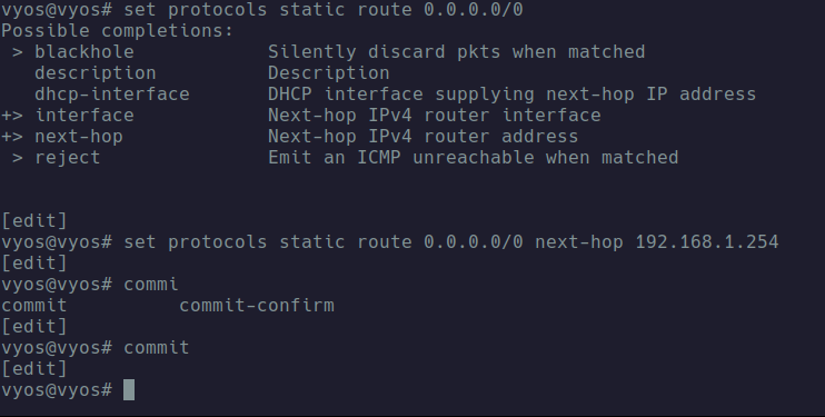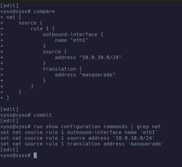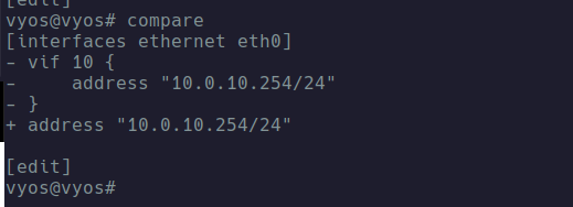 After typing these commands nothing has changed from what vyos is running, until we commit the changes.