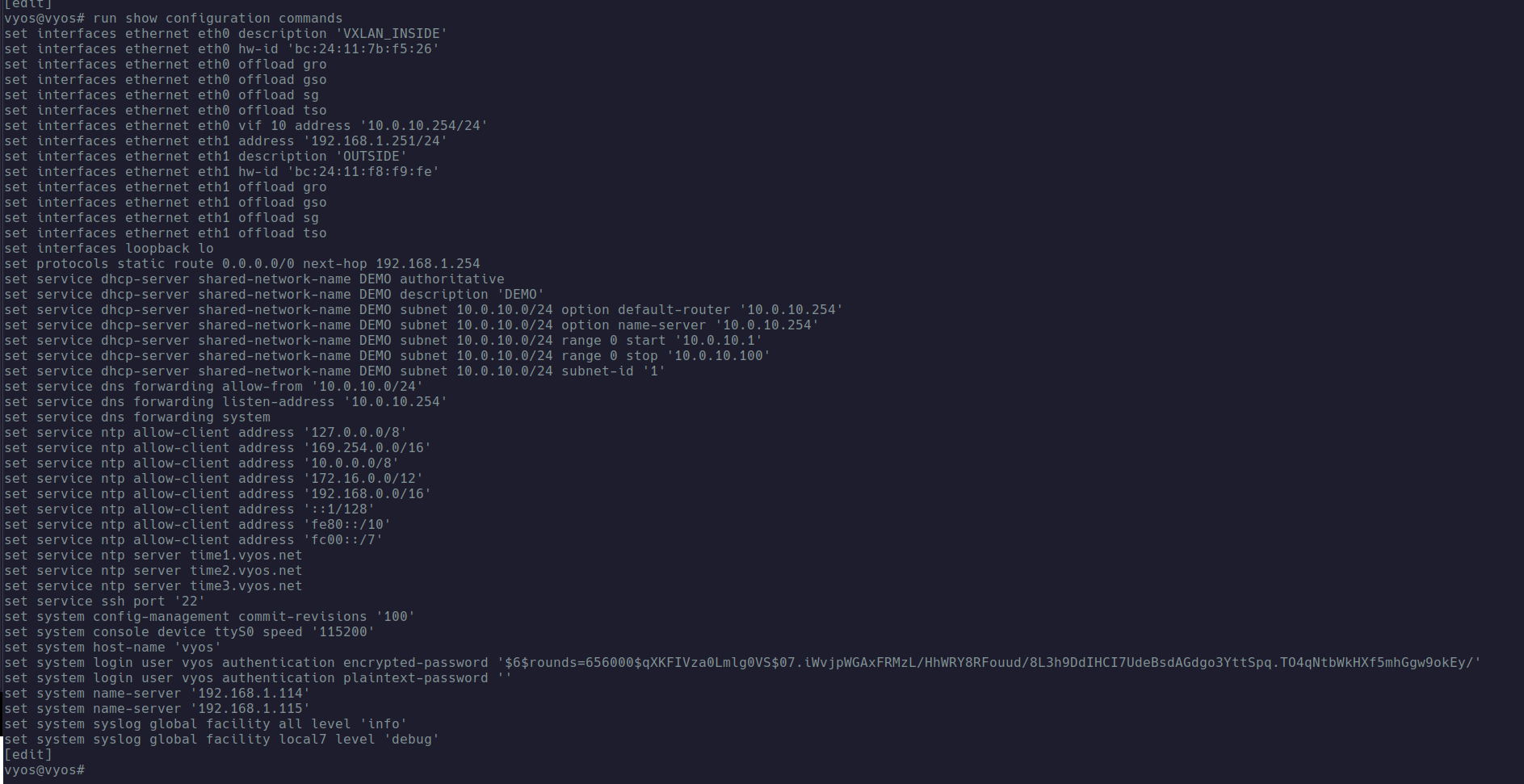 Now we have typed a fair few commands, lets see how our VyOS config looks like now…