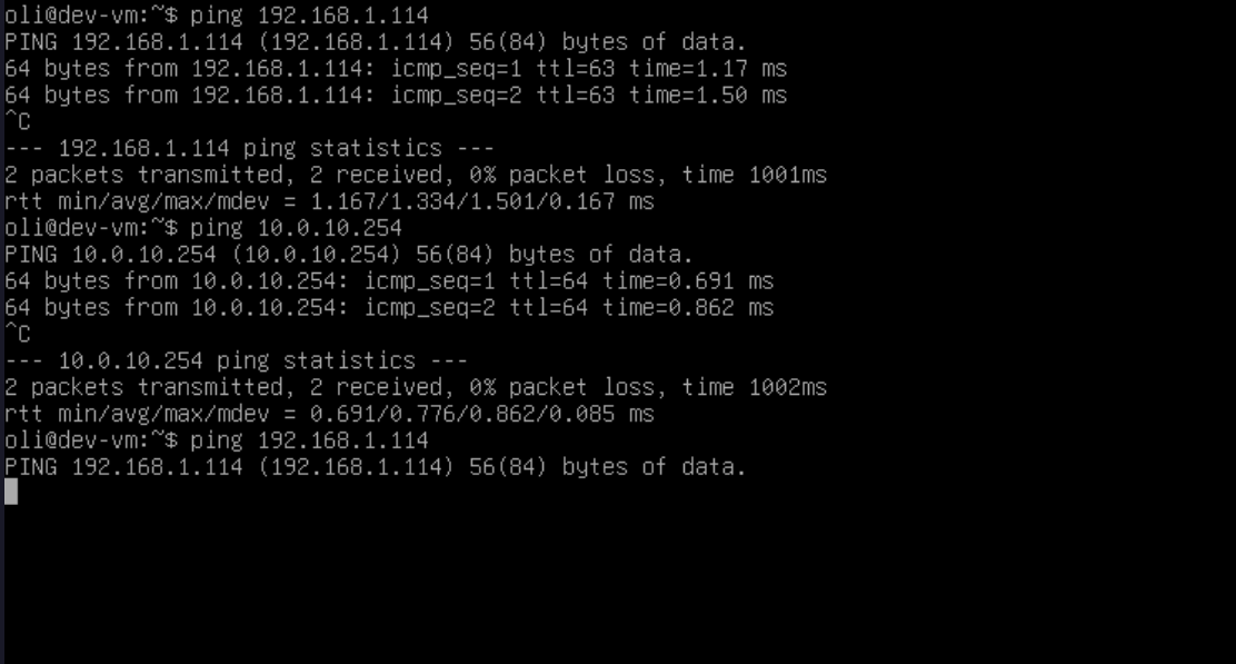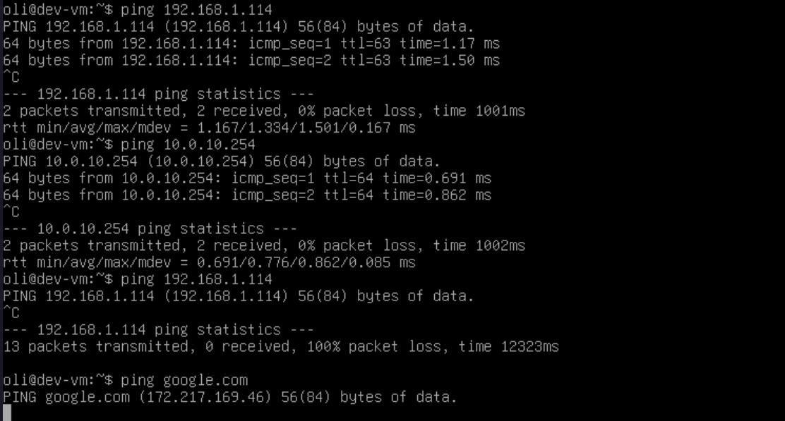 Verification time, lets test that I can no longer ping from VM to HOME network