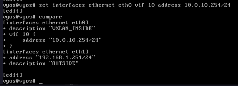 set interfaces ethernet eth0 vif 10 description VXLAN_INSIDE