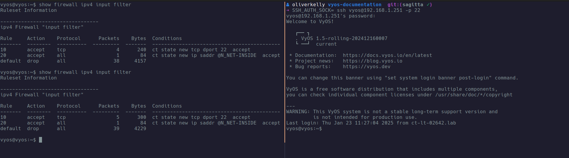 Yes, That works, and we can see if we do show firewall ipv4 input filter that there is a couple of packets